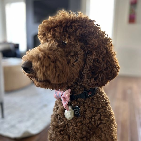 Daisy is an F1 Bernedoodle (Abby x Riggs) and weighs ~55lb.