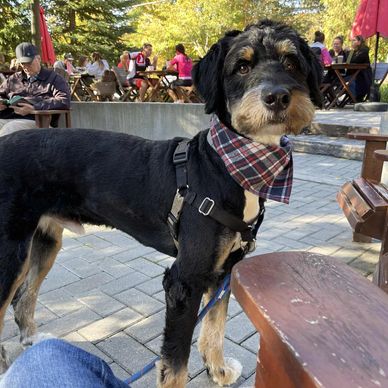 Ben is from the Abby × Ollie pairing and is an Ultra Bernedoodle—about 60% Bernese. He lives in a wonderful guardian home and has a loving, social personality. Ben enjoys going on walks and spending time on patios with his family and is adored by everyone who meets him.